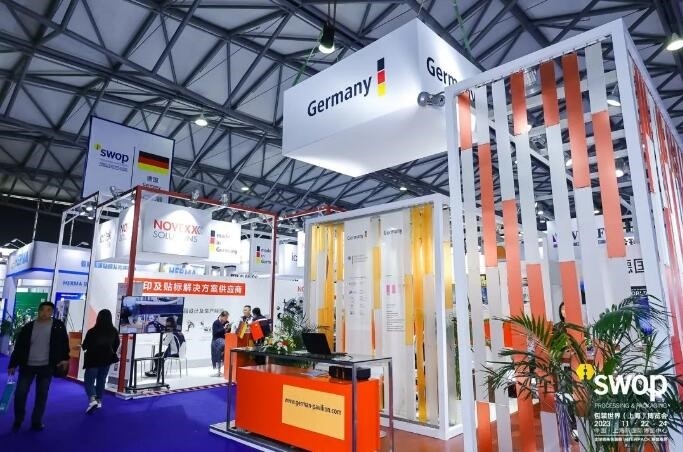 swop 2023展会现场,德国展团(German Pavilion)再度集结,携众多德国企业集体亮相,为买家带来前瞻的德国包装解决方案。