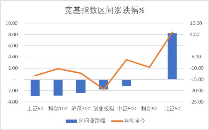 如上图,本周市场继续出现分化,北证50涨8.22%排第一,科创50微涨0.08%紧随其后,上证50垫底。