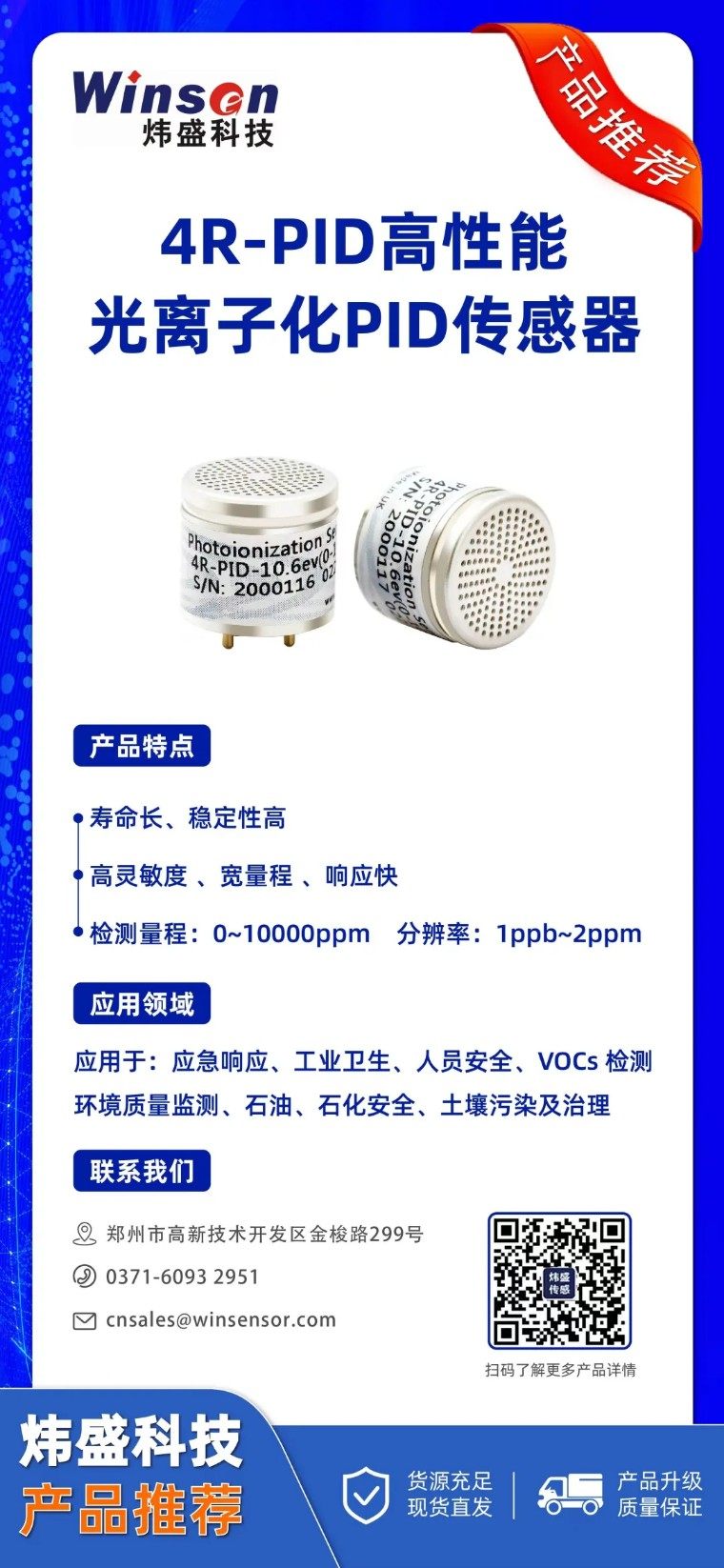 炜盛科技自主研发生产的高性能光离子化PID传感器——4R-PID,具有高灵敏度、宽范围、广谱的特点,并且全量程可定制。它能够在不同应用领域对数千种挥发性有机化合物(VOCs) 及部分无机蒸气进行检测,可用于各类手持便携式、现场固定式仪器仪表,也可应用于多种类型的分析仪器,让VOCs监测更高效!