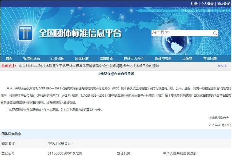 日前,由上海市环境监测中心、上海市计量测试技术研究院、上海大学和中华环保联合会VOCs污染防治专业委员会等近二十家国内权威科研院所、高等院校、行业协会、优秀仪器厂商,共同起草制定的全国性团体标准《便携式挥发性有机物光离子化检测仪(PID)技术要求及监测规范》(T/ACEF 096—2023)(以下简称《标准》)在全国团体标准信息平台正式发布并实施。