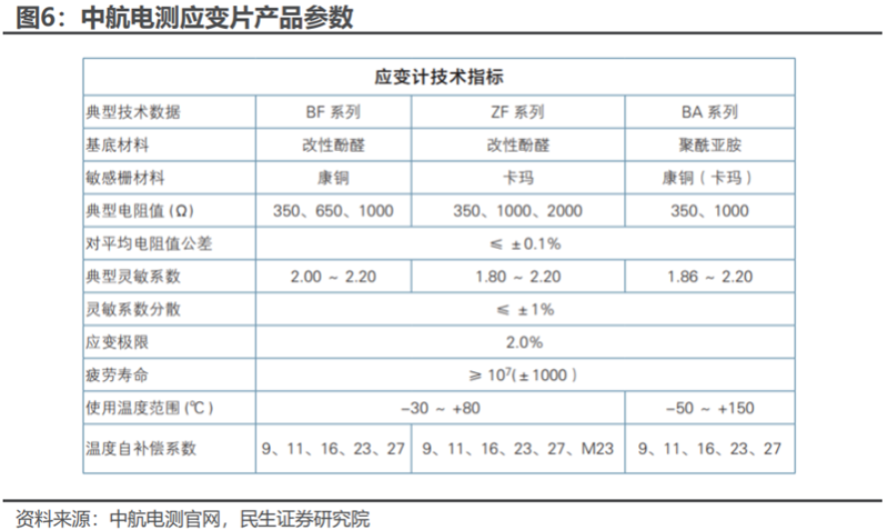 应变片的核心性能指标是灵敏系数和疲劳寿命,国内外生产的应变片主要技术差异体现于此。一般而言,国内的应变片价格,根据中航电测招股说明书披露的数据计算,大约在几元左右,而海外进口应变片的价格可达百元以上。