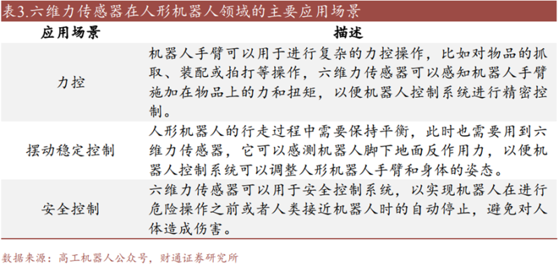 力传感器是机器人主动柔顺控制必不可少的部件,它直接影响着机器人的力控制性能。而在机器人力控解决方案中,六维力传感器是目前应用最为广泛的力觉传感器,随着人形机器人的逐步放量,力传感器和六维力矩传感器有望快速增长。
