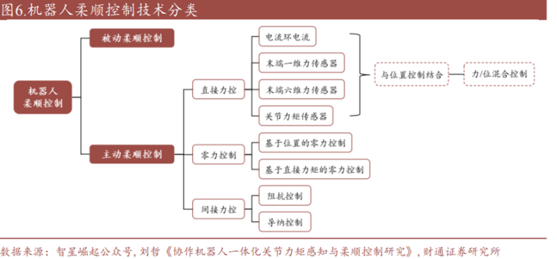 人机协作要以机器人的柔顺控制作为前提。当与机器人产生交互的外界环境发生改变,机器人应对这种改变产生顺应性变化,这就是所谓的柔顺性。如让机器人末端执行器在受到环境扰动时能保持与环境的恒定接触力,或是机器人顺应操作人员施加的外部牵引力,以运动到操作人员期望的位置。