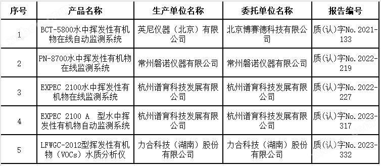 水中挥发性有机物在线自动监测仪适用性检测合格名录 (截至2023年9月30日)