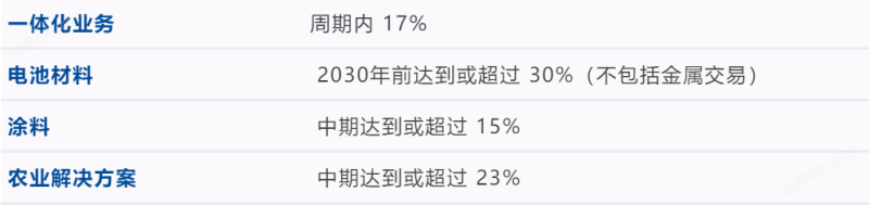 巴斯夫将高度重视所有业务产生的现金流。此外,不计特殊项目的息税、折旧、摊销前收益率目标如下: