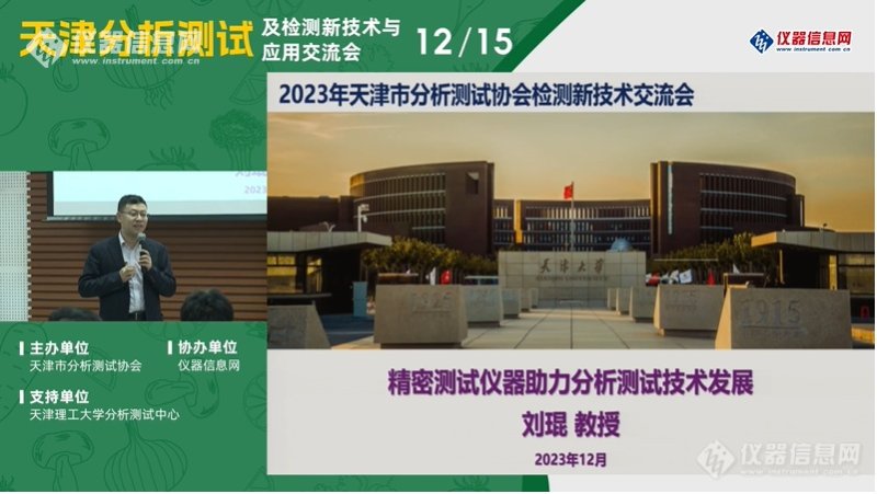 仪器信息网讯 2023年12月15日,第八届会员代表大会及检测新技术与应用交流会在天津理工大学顺利召开!本次交流会由天津市分析测试协会主办,仪器信息网协办,天津理工大学分析测试中心支持,围绕分析仪器新技术新方法展开讨论,由中海油天津化工研究设计院有限公司王琪主任担任主持人,共邀请了7位报告嘉宾围绕精密测试、色质谱等仪器做分享,覆盖石油化工、环境、食品、制药等多个领域。