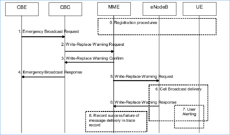 PWS 告警消息是由小区广播实体(CBE,Cell Broadcast Entity)生成的,经过小区广播中心(CBC,Cell Broadcast Center)和 AMF 发送至基站。基站将告警消息转换为系统广播消息(SIB6 / SIB7 / SIB8)从 Uu 口发出。详细参照 TS23.401-a60。下图为无线广播消息的标准流程(来自协议 23041-a60 的 9.1.3.4.2 节)
