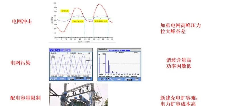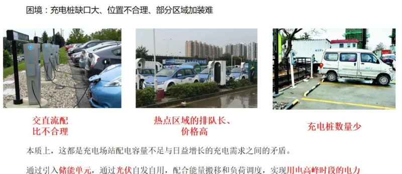 储能充电一体化系统由储能系统和充电设施组成,针对区域充电站电力容量不足的痛点,主要用于解决区域充电站的增容扩容难的问题,该系统还能参与电网调峰、削峰填谷等辅助服务,支持短时离网运行,甚至作为能源互联网的的配套设施,支持智能电网、智能充电、智能信息网的三网融合发展。