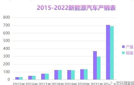 2022年,我国新能源汽车持续爆发式增长。中国汽车工业协会最新公布的数据显示,2022年新能源汽车产销量分别完成705.8万辆和688.7万辆,