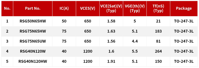 针对MPPT STAGE模块的BOOST升压线路,还有INVERTER STAGE模块的双向DC-AC转化器,推荐瑞森半导体的IGBT系列: