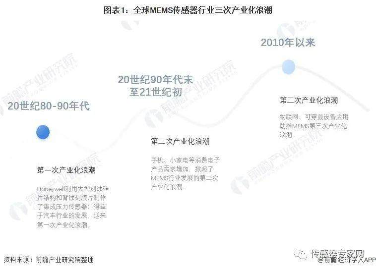MEMS起源可追溯至20世纪50年代,硅的压阻效应被发现后,人们开始了对硅传感器的研究。MEMS产业真正发展始于20世纪80年代,前后经历了3次产业化浪潮。