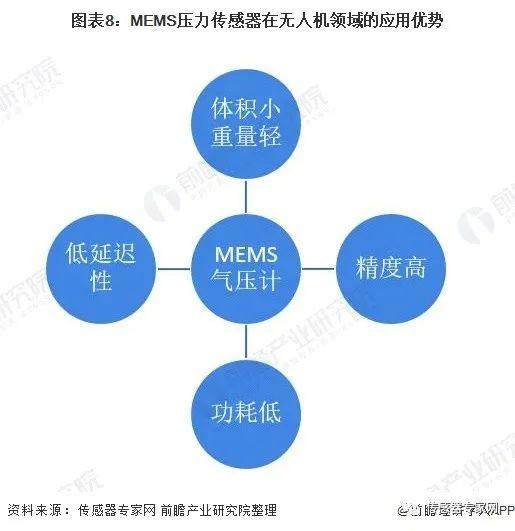 从应用来看,无人机内置的高性能MEMS气压传感器可精确测量高度,并可与IMU的高度控制读数结合使用。另外,MEMS气压计还有低延迟性、体积小、重量轻、功耗低等优势。