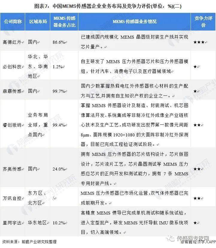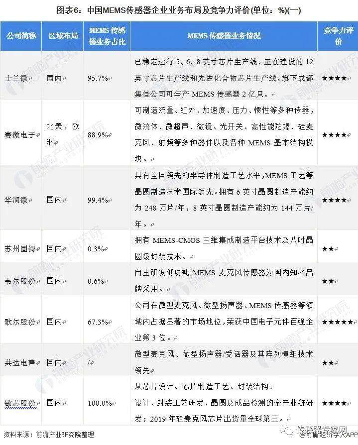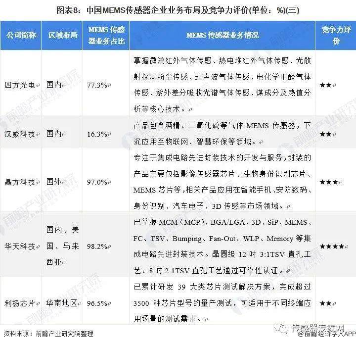 4、中国MEMS传感器行业企业布局及竞争力评价