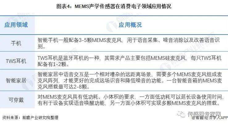 随后,医疗电子、汽车电子、可穿戴设备、物联网也为MEMS声学传感器应用领域。