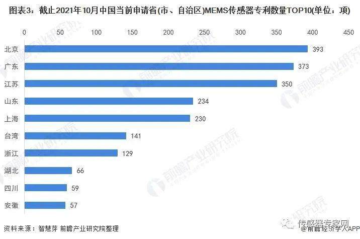 中国方面,北京为中国当前申请MEMS传感器专利数量最多的省份,累计当前MEMS传感器专利申请数量为393项。