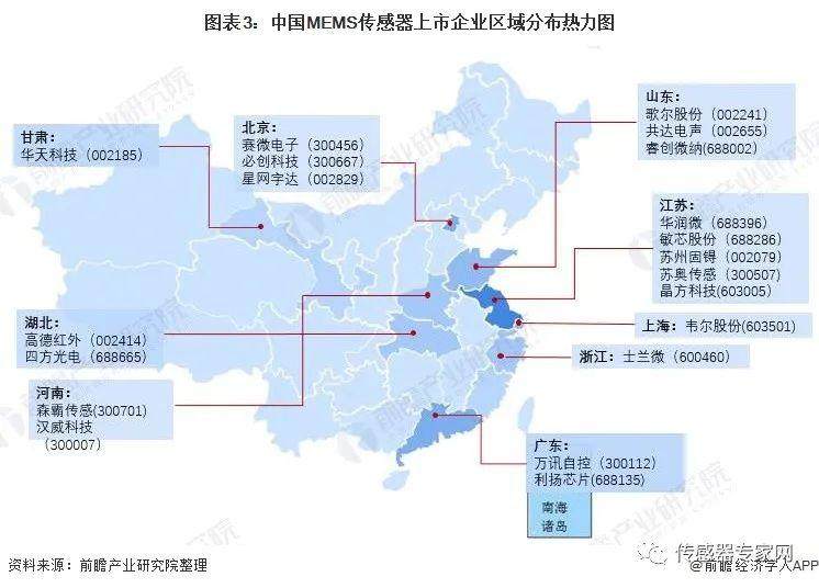 MEMS传感器产业产业链区域热力地图:广东生产企业分布最集中,长三角龙头集聚