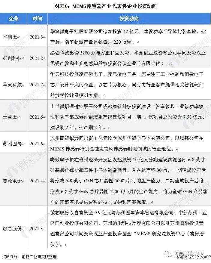 MEMS传感器产业代表性企业最新投资动向