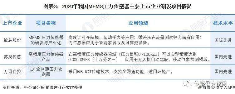 从主要上市企业有关MEMS压力传感器的研发项目来看,各企业积极布局高精度等高端MEMS压力传感器,具体来看敏芯股份(688286)的研发项目达到国际先进水平,可广泛用于可穿戴、智能家居等领域;另外,其在MEMS压力传感器的封装测试技术已经达到行业领先水平。未来,随着像敏芯股份(688286)一类的企业将不断涌现,我国MEMS压力传感器芯片设计国产化以及行业产业化可期。