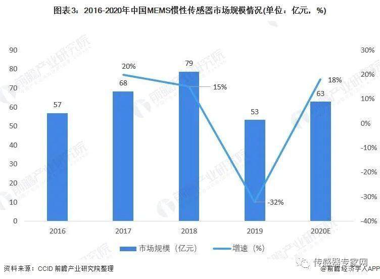 2020年MEMS惯性传感器的市场规模约为63亿元,相较于MEMS压力传感器市场规模较小,属于“小而美”的细分市场。