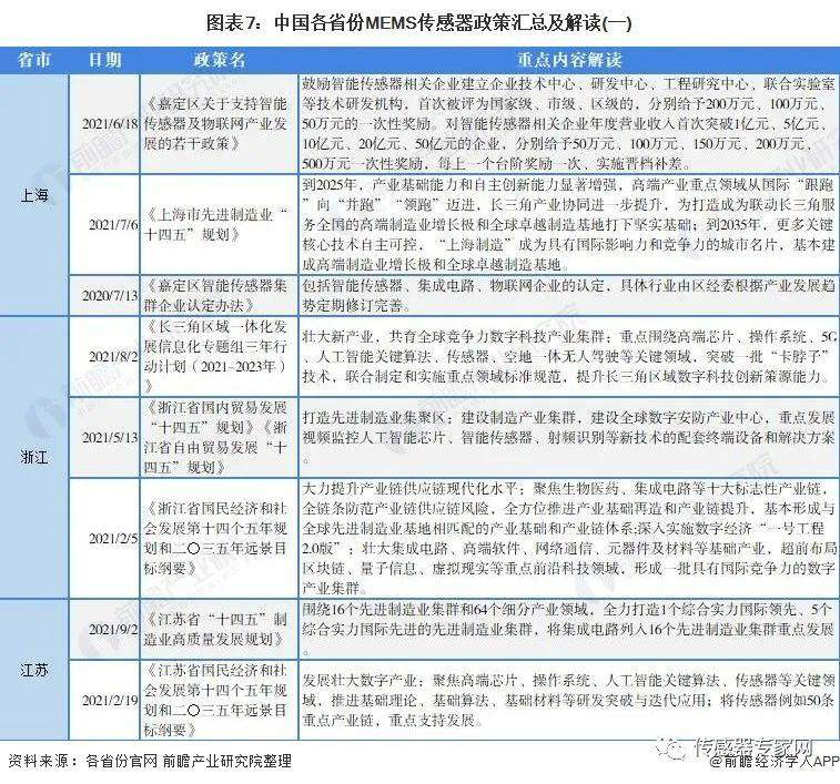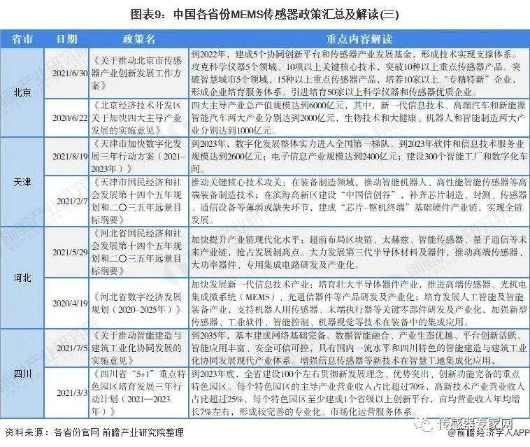 ——31省市MEMS传感器行业政策汇总
