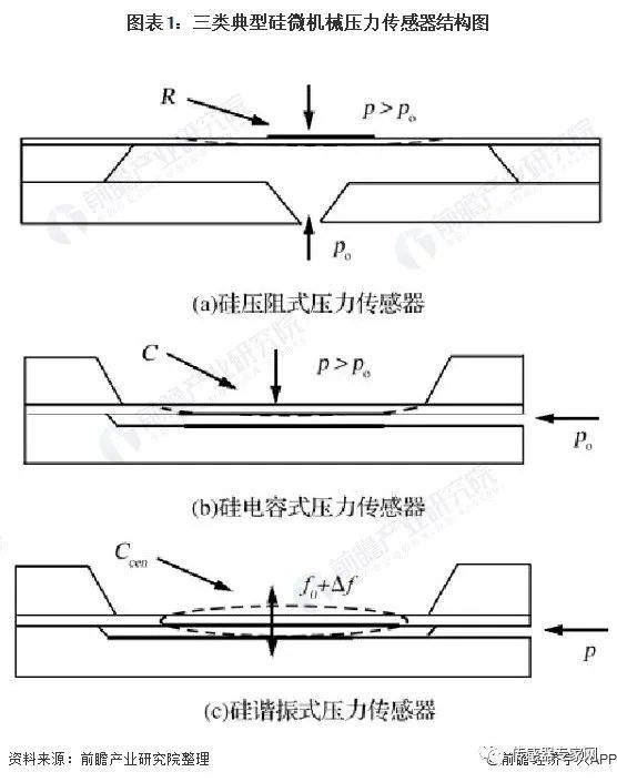 一般来讲,大部分MEMS压力传感器的敏感元件是硅膜片,按照不同的敏感机理,MEMS压力传感器可以分为电容式压力传感器、压阻式压力传感器以及谐振式压力传感器。