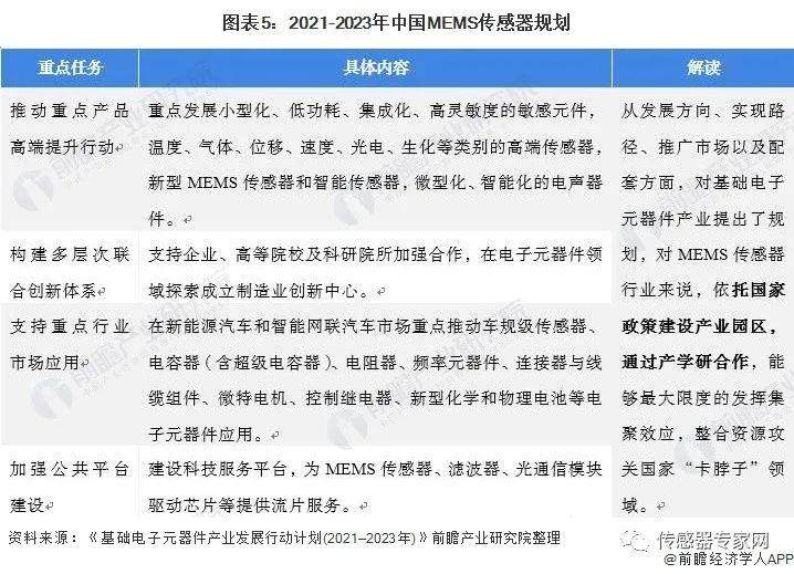 2021年1月29日,国家工信部发布《基础电子元器件产业发展行动计划(2021—2023年)》,从发展方向、实现路径、推广市场以及配套方面,对基础电子元器件产业提出了规划。具体来看,针对新型MEMS传感器重点向小型化、低功耗、集成化发展,支持产、学、研合作。完善MEMS传感器行业配套,优化发展环境。