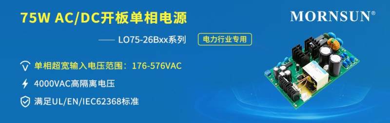为解决电力行业220VAC单相接地故障问题,金升阳推出75W AC/DC开板单相电源——LO75-26Bxx系列。系列产品拥有单相超宽输入电压范围:176-576VAC,可应用在三相四线制等高压电力系统。