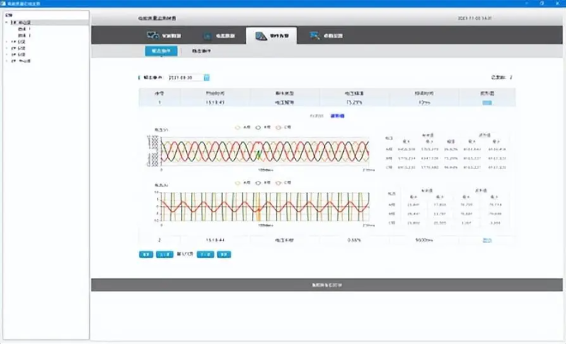 功能:实时监测电压偏差、频率偏差、三相电压不平衡、电压波动和闪变、谐波等电能质量,记录各类电能质量事件,记录事件发生前后的波形,辅助用户分析电能质量发生的原因,定位扰动源。