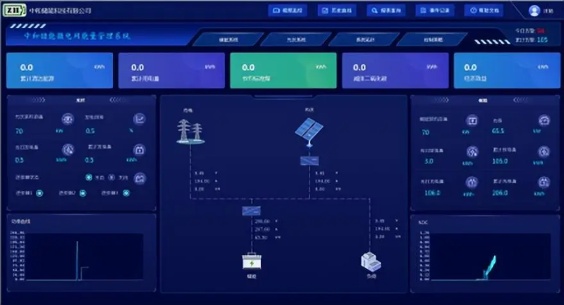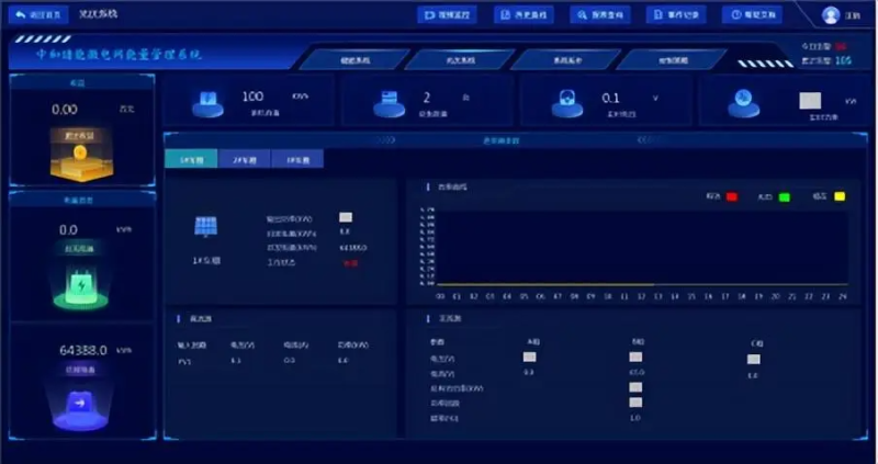 监测储能系统、电池管理系统(BMS)和储能变流器(PCS)运行,包括运行模式、功率控制模式,功率、电压、电流、频率等预定值信息、储能电池充放电电压、电流、SOC、温度,根据企业峰谷特点和电价波动设置储能系统的充放电策略,控制储能系统充放电模式,实现削峰填谷,降低企业用电成本。