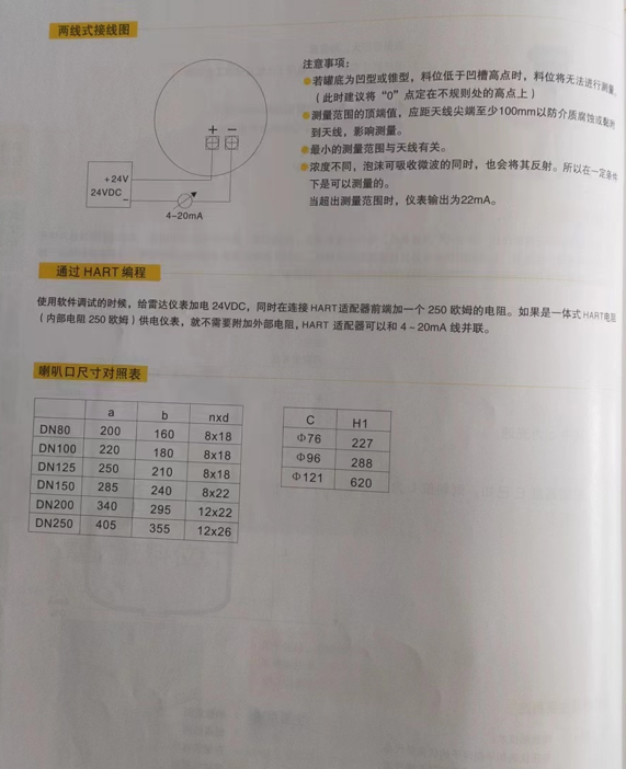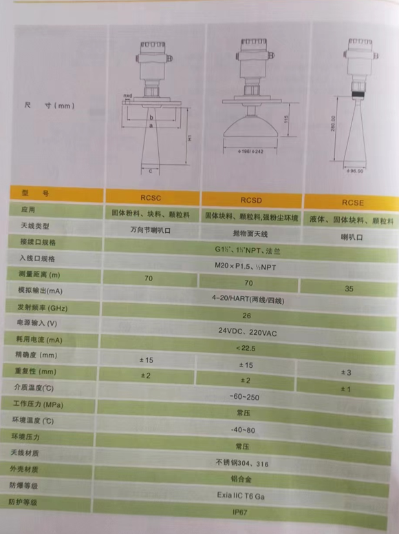 以上5中雷达物位计都有4-20毫安HART协议,供电都有24V和220V可选