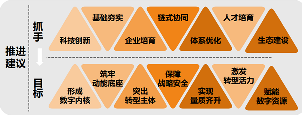 对于国有企业数字化转型推进,点亮智库提出了具体建议:以强化科技创新、夯实产业基础、培育一流企业、推进链式协同、优化产业体系、构建数字生态为抓手,合力开创国有企业数字化转型新局面。