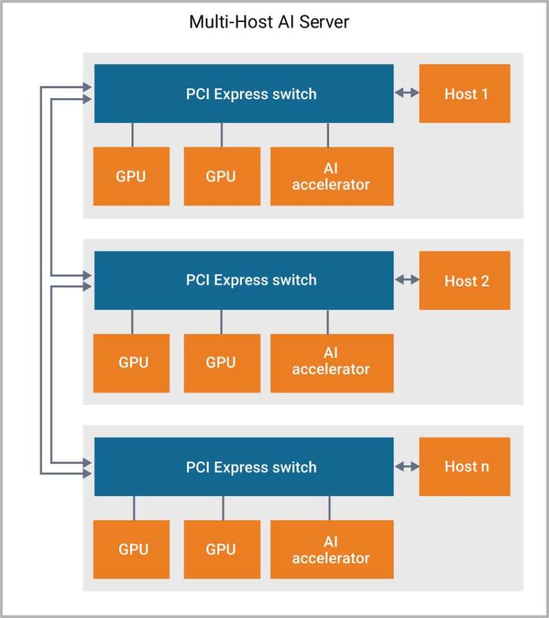 图 2:基于 PCIe 交换机架构的多主机 AI 服务器