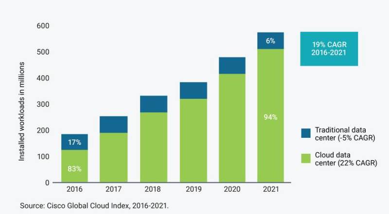 图 1:在传统和云数据中心之间分配 Cisco 工作负载和计算实例1
