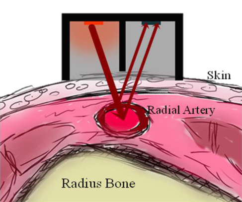 日本研究人员最先利用光电传感器进行脉搏信号的采集,研发了基于光电传感器原理的脉搏描记系统。由于红外线可以透过皮肤、血管而被血液吸收,且单位长度血管内的血容量随血液流动而时刻变化,红外线被吸收量的多少取决于血容量的多少,借助光电传感器测定血容量的变化,再将接收的光信号变换为电信号,从而体现脉搏的信息。