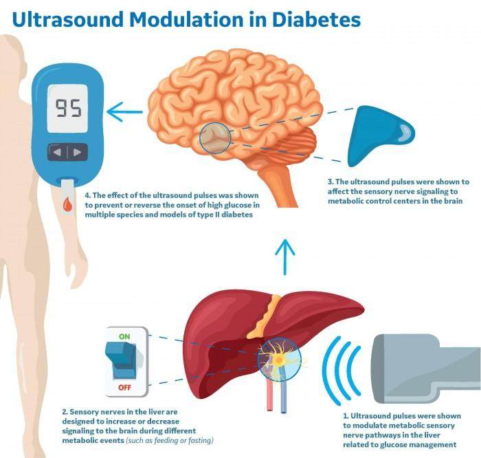 研究发现,只需每天三分钟的超声聚焦,就足以维持糖尿病动物的正常血糖水平,目前研究团队正努力确定这种方法是否可顺利转化到人类临床。