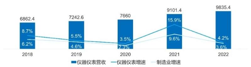 据国家统计局称,国内仪器行业市场规模近万亿元,近六年平均增速为9.4%,高于制造业平均水平。全球市场超过9000亿美元,近六年平均增速为4.5%,中国市场增速明显高于全球。