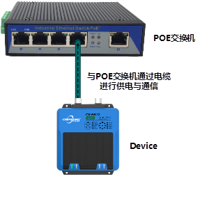 CK-FR12-E01 可以通过符合IEEE 802.3af标准的带POE供电口的交换机直接通过网线对其供电。