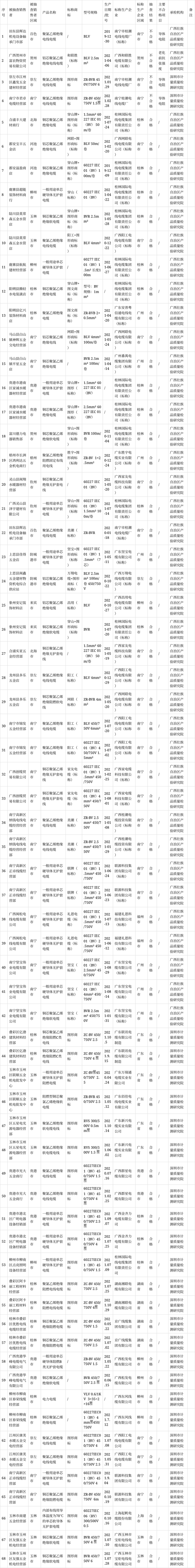 2021年生产领域电线电缆产品质量监督抽查结果汇总表