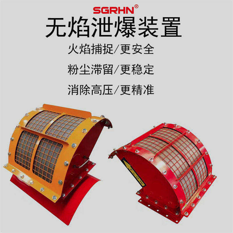针对室内除尘系统设置的安全泄压装置,适用于除尘器、斗式提升机、干燥机、旋风分离器、粉尘收集器等设备设施。该装置由火焰阻隔材料、低碳钢外壳等组成。