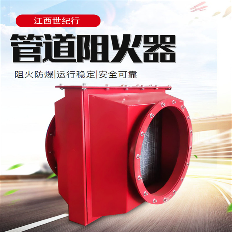 管道阻火器也叫防火器,它的主要作用是防止外部火焰窜入存有易燃易爆气体的设备以及管道内,也可阻止火焰在设备和管道间蔓延。主体是由一种能够通过气体、具有许多细小通道或缝隙的固体材料(阻火元件)所组成,这样火焰进入阻火器后会分成许多细小的火焰流而被熄灭。火焰能够被熄灭的机理是传热作用和器壁效应。防止回火而引起暴炸的安全装置。通常装在输送或排放易燃易爆气体的管道上。如火炬加热燃烧系统、石油气体回收系统或其他易燃气体系统等。
