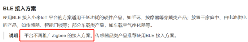 然而现在的小米已经在IoT开发者平台上明确说明,不再推广Zigbee的接入方案了。