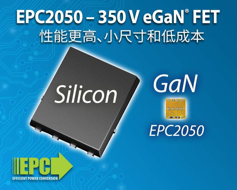 氮化镓功率晶体管EPC2050专为功率系统设计人员而设计,在极小的芯片级封装中,实现 350 V、80 mΩ 最大 RDS(on)和26 A 峰值电流,是多电平转换器、电动汽车充电、太阳能逆变器、激光雷达和 LED 照明的理想器件。