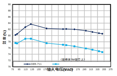 设计抗磁干扰电源时,需要考虑更高的电磁干扰(EMI)、更长的启动时间、更低的功率变换效率以及可能产 生音频噪声。将磁铁放置到磁芯上会降低符合标准所需的EMI裕量,而抗磁干扰电源设计需要更大的EMI裕 量。DER-711设计具有>6dB的传导EMI裕量。