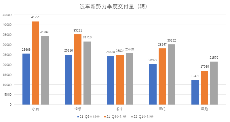 这个排名在2022年第一季度延续。随着小鹏汽车2022年3月交付量,其总交付15414台,环比增长148%,成为月底新势力交付冠军。
