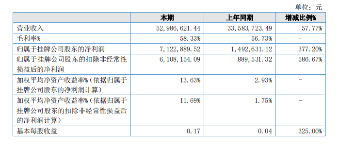 2022年3月22日,艾科技术发布2021年年度报告,报告期内,营业收入52,986,621.44元,比上年同期增长57.77%。
