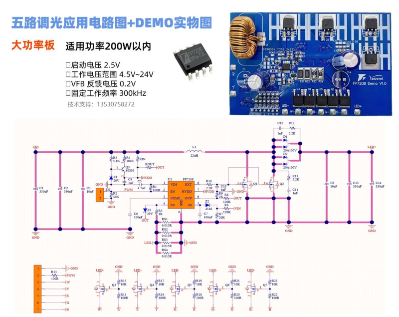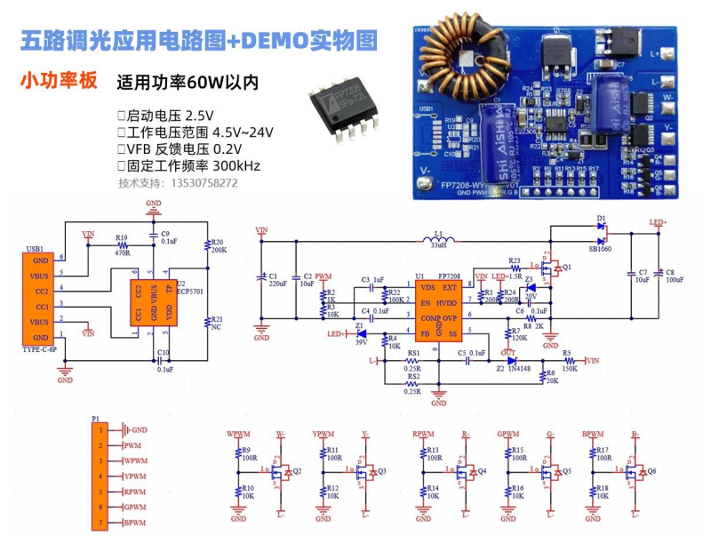 3.五路调光应用电路图+DEMO实物图