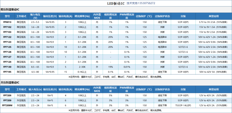 LED驱动IC选型表