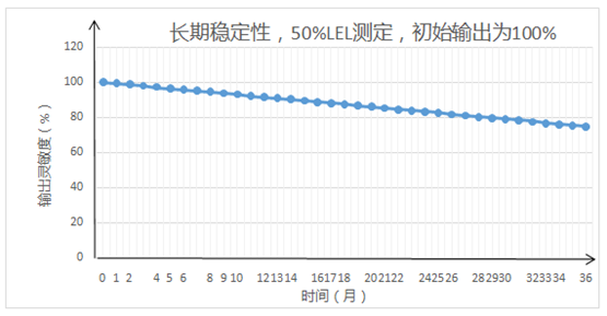 传感器当检测端和补偿端方位发生变化时(传感器垂直方向360°旋转),传感器输出信号的变化量±0.5%LEL。