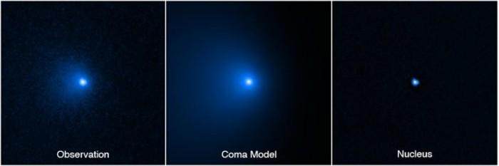 测量这颗彗星的挑战是如何从包裹着它的巨大尘埃彗星中分辨出固体彗核。目前,这颗彗星距离太远,哈勃无法从视觉上分辨其彗核。相反,哈勃的数据显示,在彗星的位置有一个明亮的光尖。许文韬和他的团队接下来制作了一个周围彗星的计算机模型,并对其进行调整以适应哈勃图像。然后,彗星的光芒被减去,留下了星状的核。