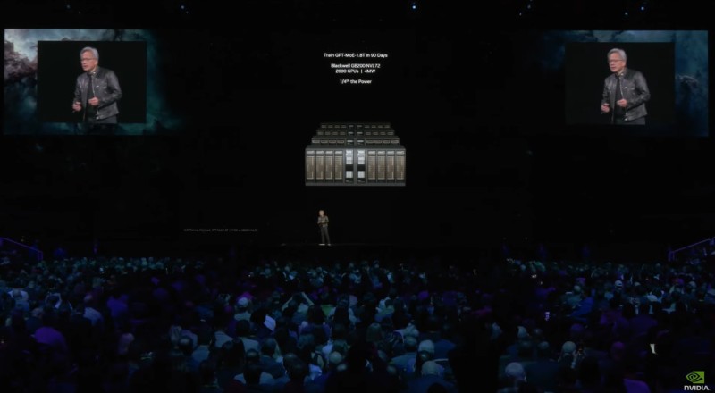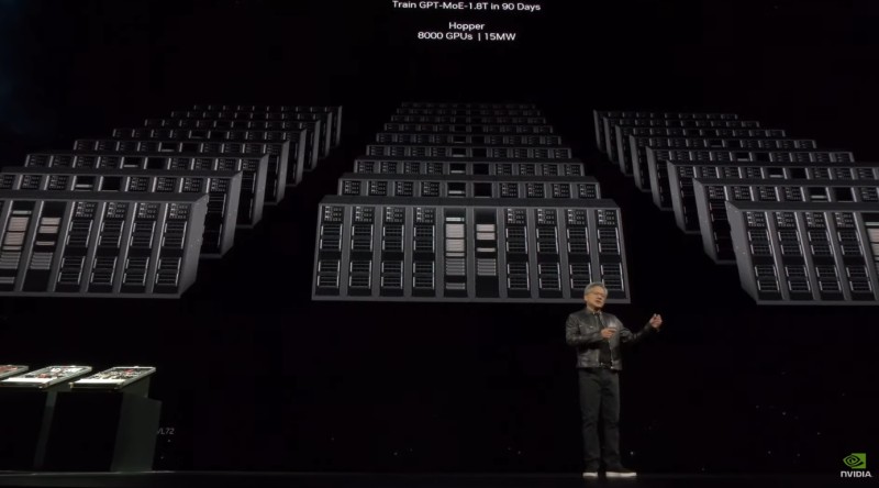 用黄仁勋自己的话来说,要训练一个参数1.8万亿的GPT模型,需要8000张Hopper GPU,耗电15兆瓦,连续跑90天。但是如果使用GB200 Blackwell GPU,只需要2000张,跑90天只需要四分之一的电。除了训练大模型,生成Token的成本也会显著降低。